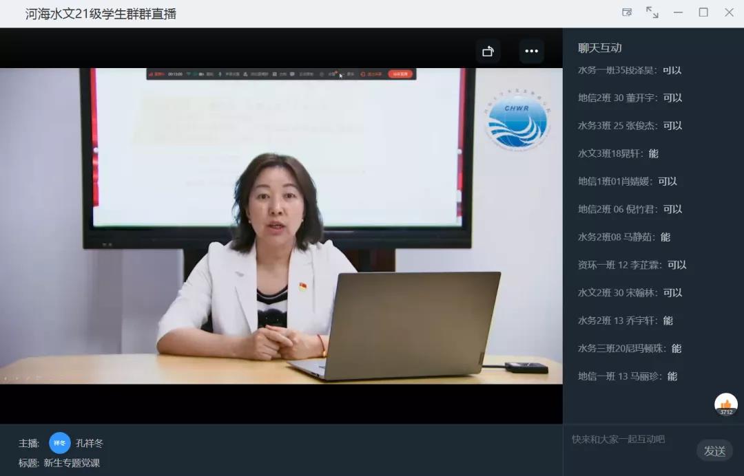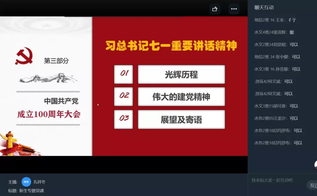 2021年9月28日,水文太阳集团tcy8722党委书记孔祥冬在线上为2021级本科新生讲授题为“学党史、强信念”专题党课。